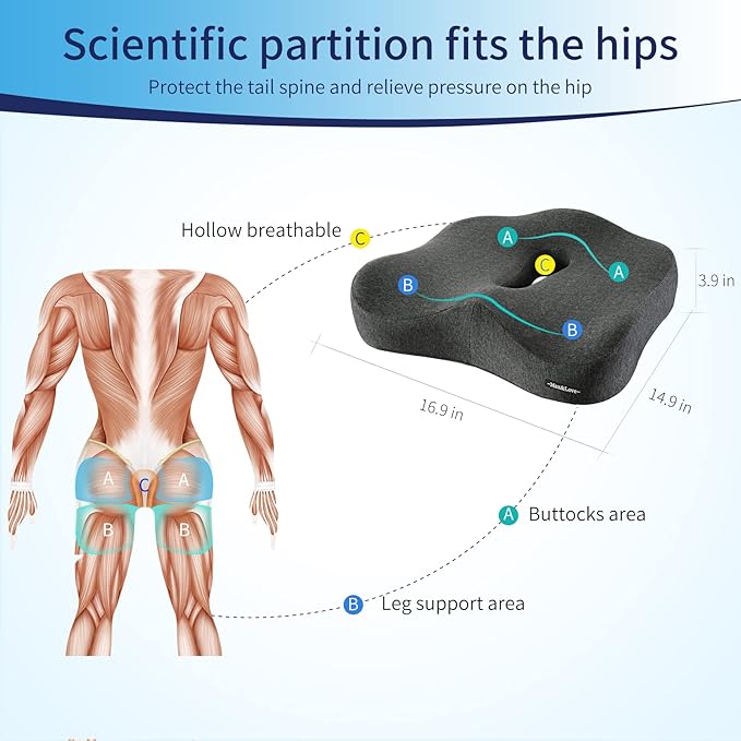 - ✔️[Obvious effect]---Our Coccyx Seat Cushion has proven to restore your spine's natural lumbar curve to the correct posture. You will feel instant relief from lower back pain, numbness and pain from sciatica, herniated discs, tailbone injuries, back pain from pregnancy, hip pain, hemorrhoids, and pressure sores.