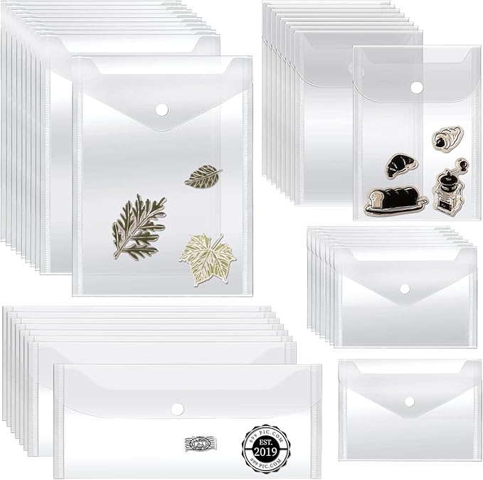 Vmiapxo 40 Pack Stamp and Die Storage Pockets, Reusable Small Plastic Envelopes Waterproof Sticker Organizer Receipt Holder Photo Storage Folders (Mixed Size)