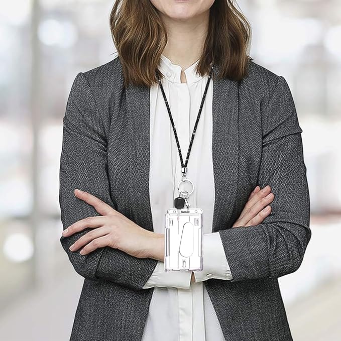 - Crystal Lanyard with Badge Holder. Our id lanyard is made of high-quality crystal beads, with 1 retractable badge reel clip and 1 clear id card holder can hold your keys & id card well, really sparkling and stylish.