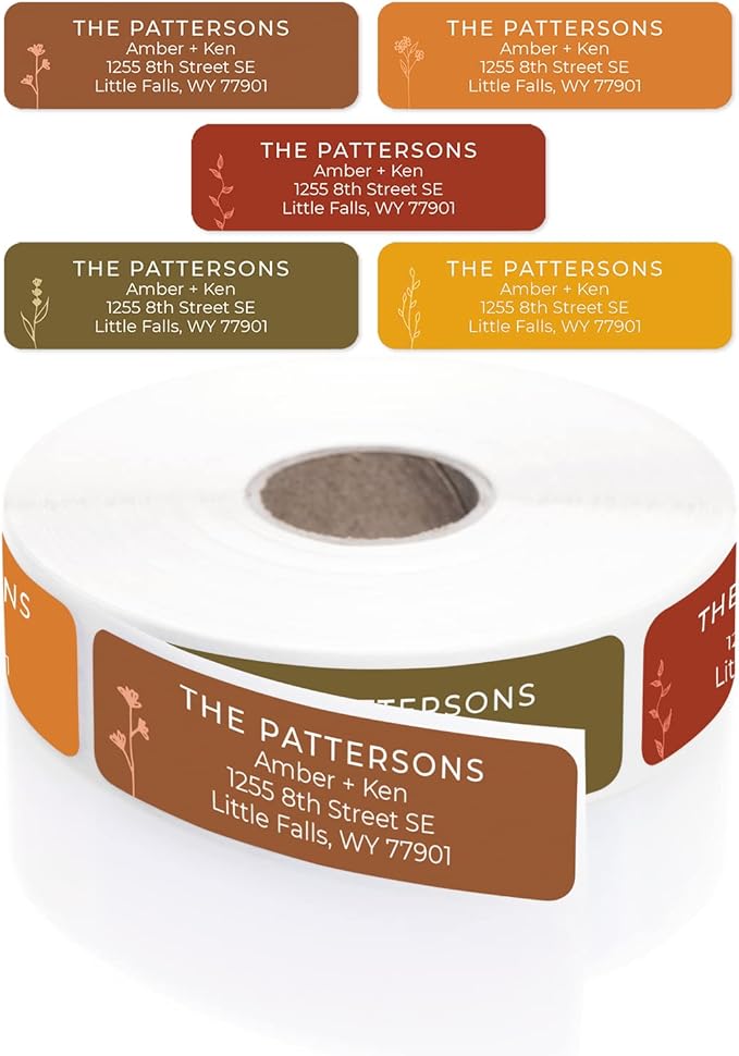 Botanical Flowers Rolled Address Labels/Roll of 500 Alternating Earth Tone Floral Illustrations Personalized Address Labels/Designer Return Address Stickers in Elegant Plastic Dispenser