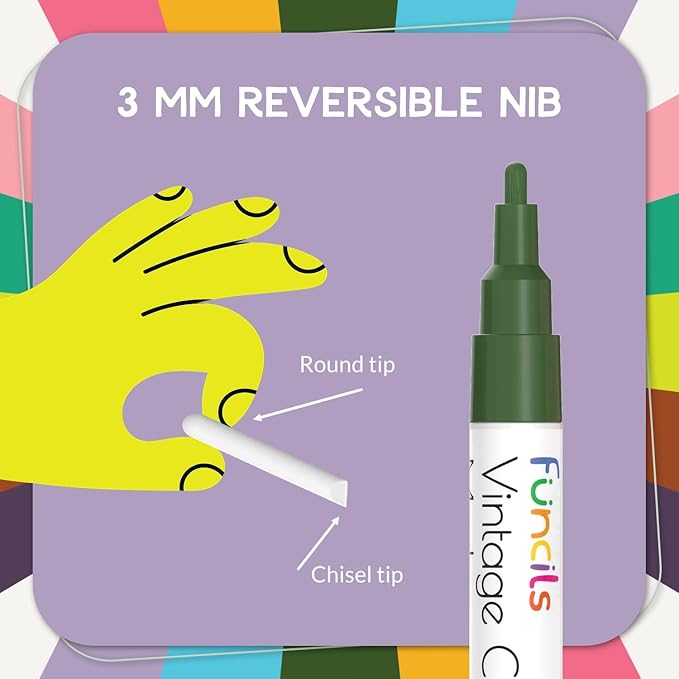 Vintage Liquid Chalk Markers for Chalkboard Signs, Blackboard, Window, Labels, Bistro, Glass, Car (10 Pack, 3mm) - Wet Wipe Erasable Ink Chalkboard Markers, Reversible Tip Liquid Chalk Pens