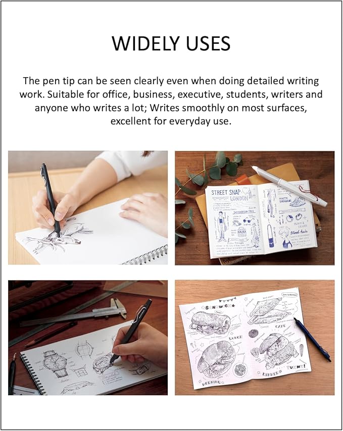 - WIDELY USES - A newly developed ''point chip'' with a shape suitable for detailed writing work such as notebooks. The pen tip can be seen clearly even when doing detailed writing work. Suitable for office, business, executive, students, writers and anyone who writes a lot; Writes smoothly on most surfaces, excellent for everyday use.