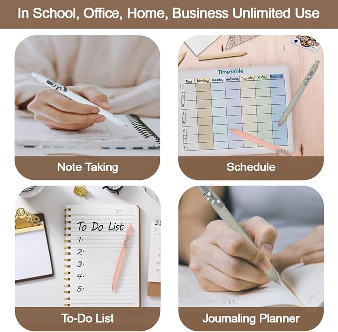 - Comfortable & Retractable : Click-style pens with a lightweight body ensure a comfortable grip for long study sessions or workdays - no caps to lose.