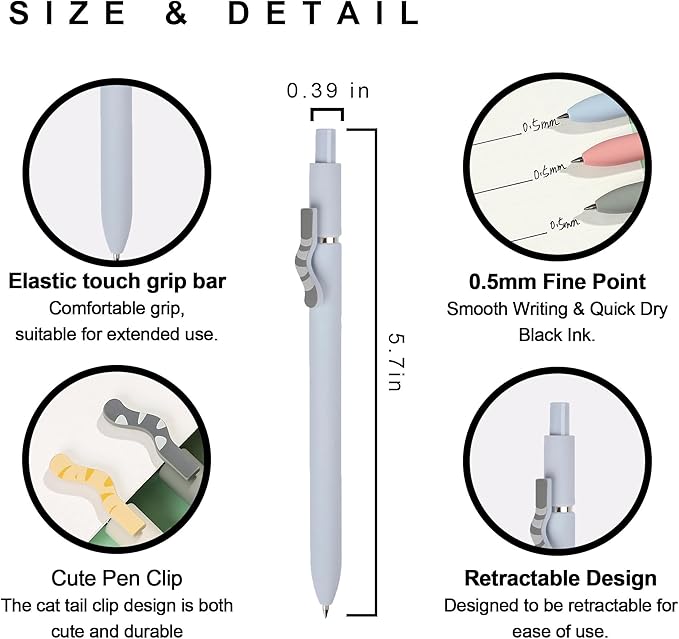 - Cute Cat Design for Daily Joy : Each pen features a charming cat-shaped click top—perfect for adding personality to your school supplies or office desk.