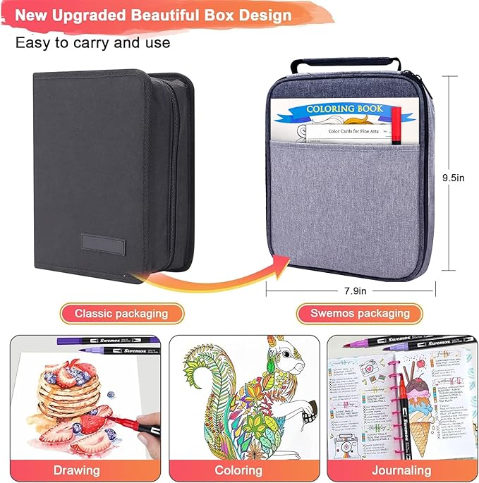 - ❤Swemos UNIQUE DETACHABLE BAG DESIGN❤: Easy to carry and use. Different from the normal black bag. These art markers are all in a beautiful zipper bag. Just disassemble markers from the bag, you will get a normal portable bag that can put in anything you want. With Handle, reusable, portable, and durable. Beautiful gift choice!