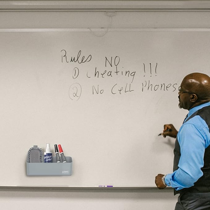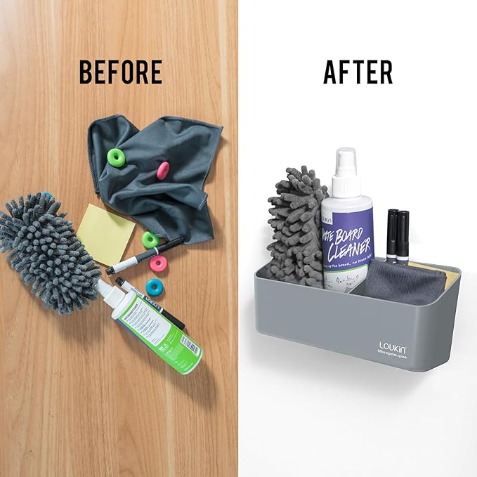 loukin Magnetic and Adhesive Marker Holder, Dry Erase Accessory Tray, Magnetic Storage Organizer for Whiteboard, Glass or Refrigerators (Grey)