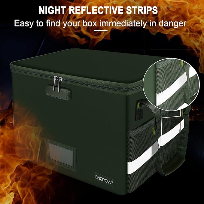 • Fireproof and water-resistant: Fireproof lock box is made of double layered non-itchy silicone coated fiberglass which stands up the temperature up to 2000℉.It has been passed by SGS TEST(UL94 VTM-0 Certified).Fireproof file box is not only fireproof but also high water resistant in case it gets wet for any reason.Nothing is completely foolproof, but added protection is always a good idea.