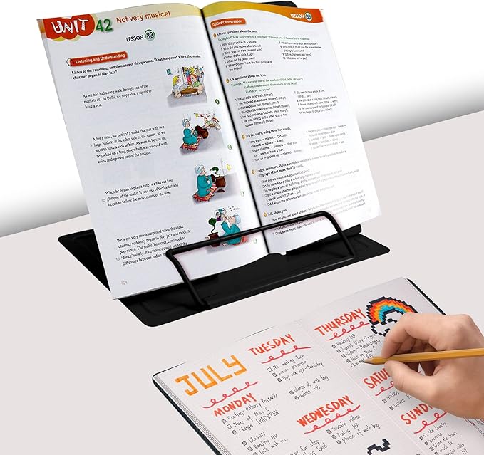 - 【Book Holder for Reading】The book holder is designed for keeping your hands-free when we are reading cookbook magazine painting papers documents text books sheet music catalogs notetablet or iPad. Support thicker books in school library dorm office or any other desktop.