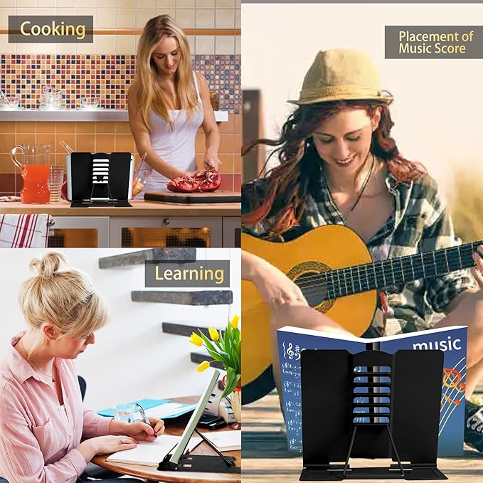 - 【Adjustable Book Holder】 Book Holder have six reading positions,The multiple notches on the backrest can adjust its height and angle.Adjust the height between the eyes and reading books or documents well