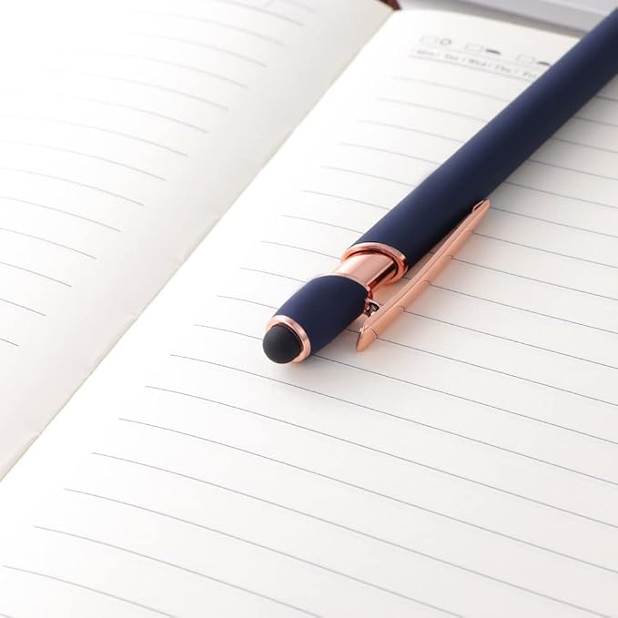 12 PCS 2 in 1 Stylus Ballpoint Pen with Stylus Tip, 1.0 mm Black Ink Metal Pen Stylus Pen for Touch Screens (Rose Gold & Blue)