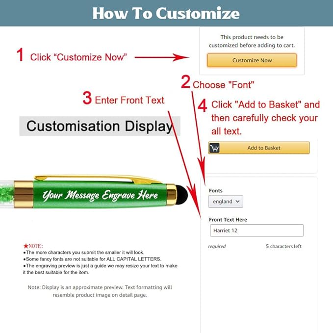 - FREE PERSONALIZATION You can have up to 40 characters (including spaces) on each line, up to 2 customized lines are free. we use laser engraving technology to engrave the text on the pen without fading. As long as you click the "Customize" option, you can easily customize it. Beautiful appearance, suitable for gift.