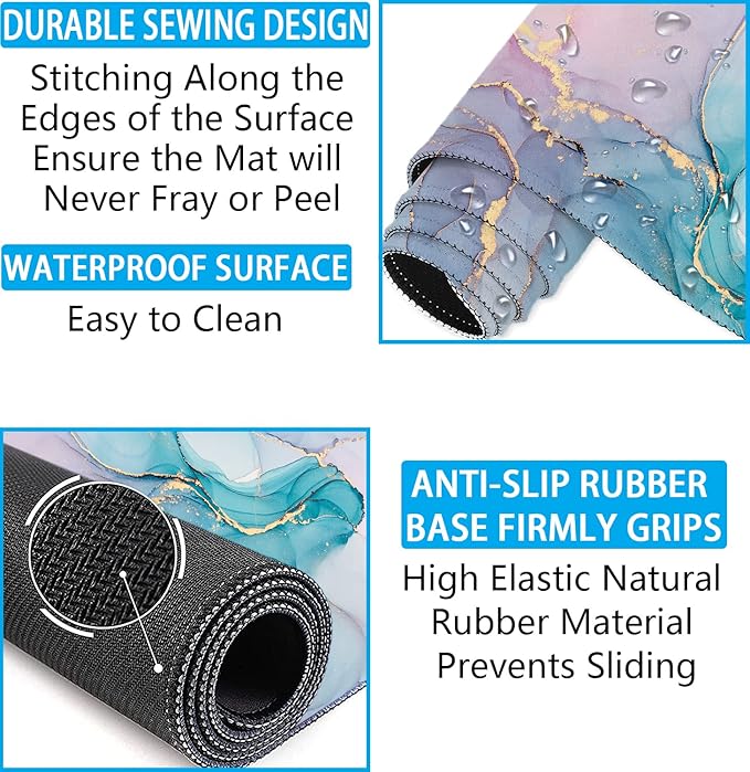 - 【Anti Slip & Stitched Edges】The soft and dense non-skid nature rubber base keeps this desk pad cover firmly in place. Just immerse into your work or games without worrying about the annoying mouse pad movement. And the delicate stitched edges can prevent wear, deformation and degumming in prolonged use. Design for security and durability, and enhances the aesthetic and lifespan of the mouse pad.