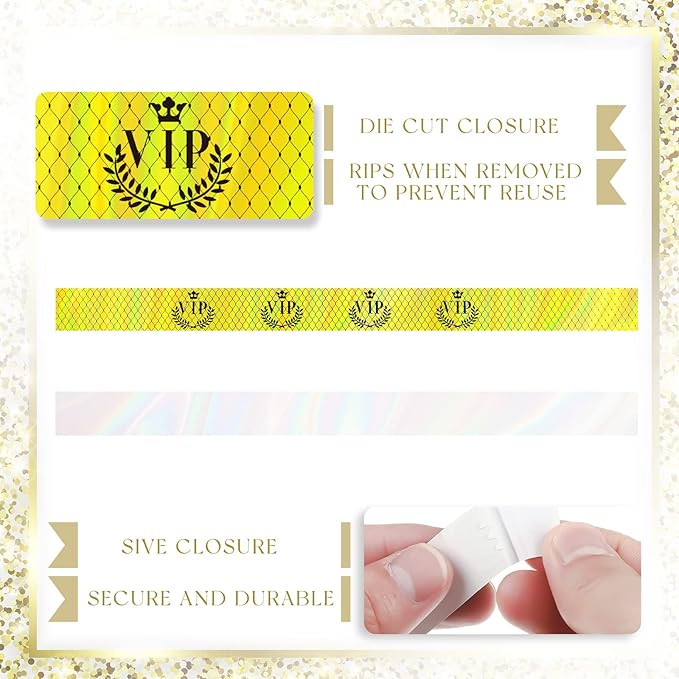 - Proper Size for Most People: these VIP bracelets are about 9.84 inches long and 1.2 inches wide, suitable for both men and women; There is non stick glue on the wristbands, and the glue length is 3 cm/ 1.18 inches, so you can easily adjust the size to find the right fit for your wrist