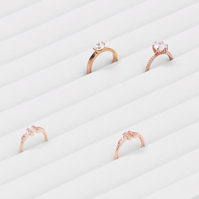 Oirlv Premium White Leather Stackable Jewelry Tray Ring Holder Organizer Showcase Ring Earring Display