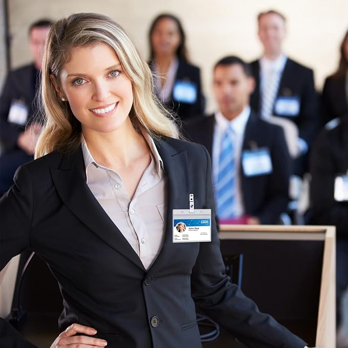 • Suitable Size: Horizontal name badge holder measures 100×84mm/ 3.9×3.3 inches (L*W), and the inner dimension is 88×57mm/ 3.5×2.4 inches. Standard size and horizontal style fit most cards