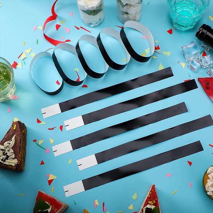 600 Packs Paper Wristbands for Events Neon Party Wristbands Colored Waterproof Paper Club Arm Bands Lightweight Identification for Concert Bar Entrance Admission(Black)