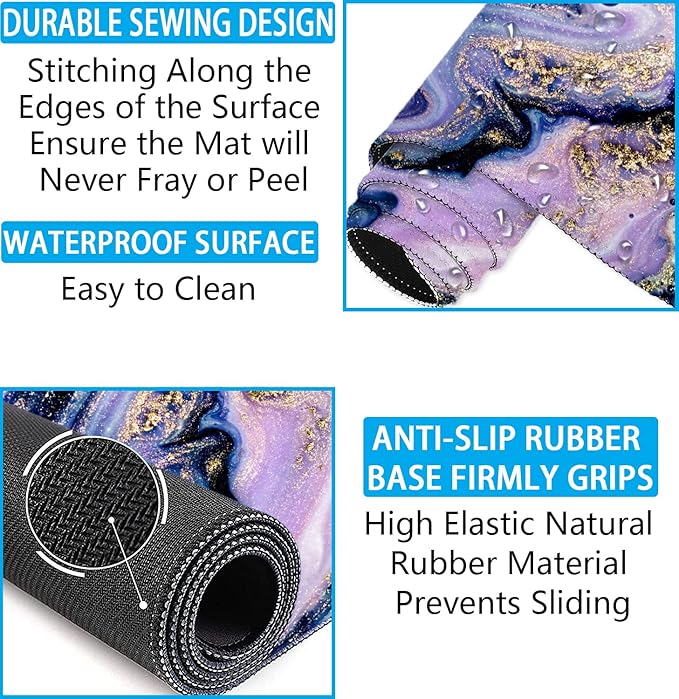 - 【Anti Slip & Stitched Edges】The soft and dense non-skid nature rubber base keeps this desk pad cover firmly in place. Just immerse into your work or games without worrying about the annoying mouse pad movement. And the delicate stitched edges can prevent wear, deformation and degumming in prolonged use. Design for security and durability, and enhances the aesthetic and lifespan of the mouse pad.