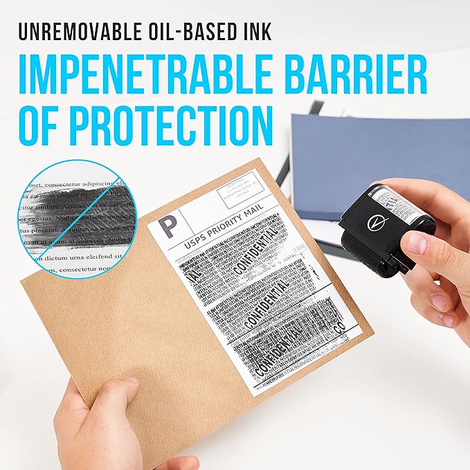Identity Theft Protection Roller Stamps Wide Kit - Confidential Roller Stamp, Anti Theft, Privacy & Security Stamp, Designed for ID Blackout Security - Classy Black