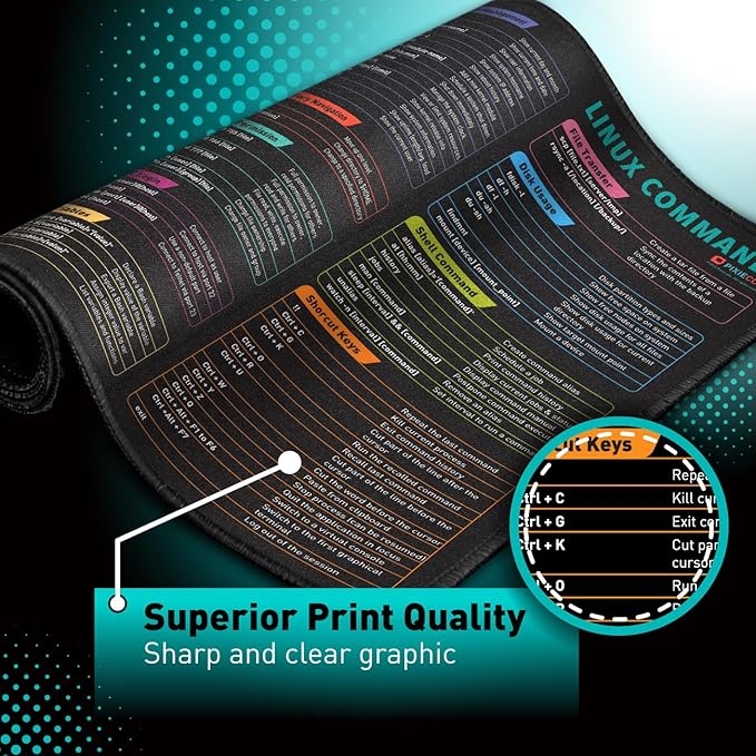 Linux Commands Line Mouse pad - Extended Large Cheat Sheet Mousepad. Shortcuts to Kali/Red Hat/Ubuntu/OpenSUSE/Arch/Debian/Unix Programmer. XXL Non-Slip Gaming Desk mat