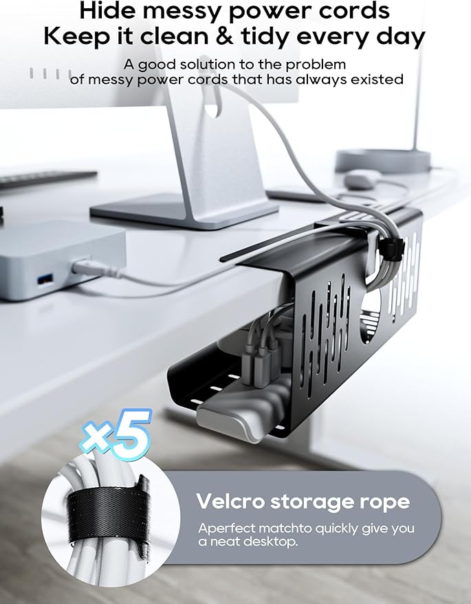 - NO NEED TO DRILL, BUT STRONGER——Fix the under-desk cable tray with the clamp-clip and tighten it, 3s to complete. The important thing is that it doesn't damage your table.