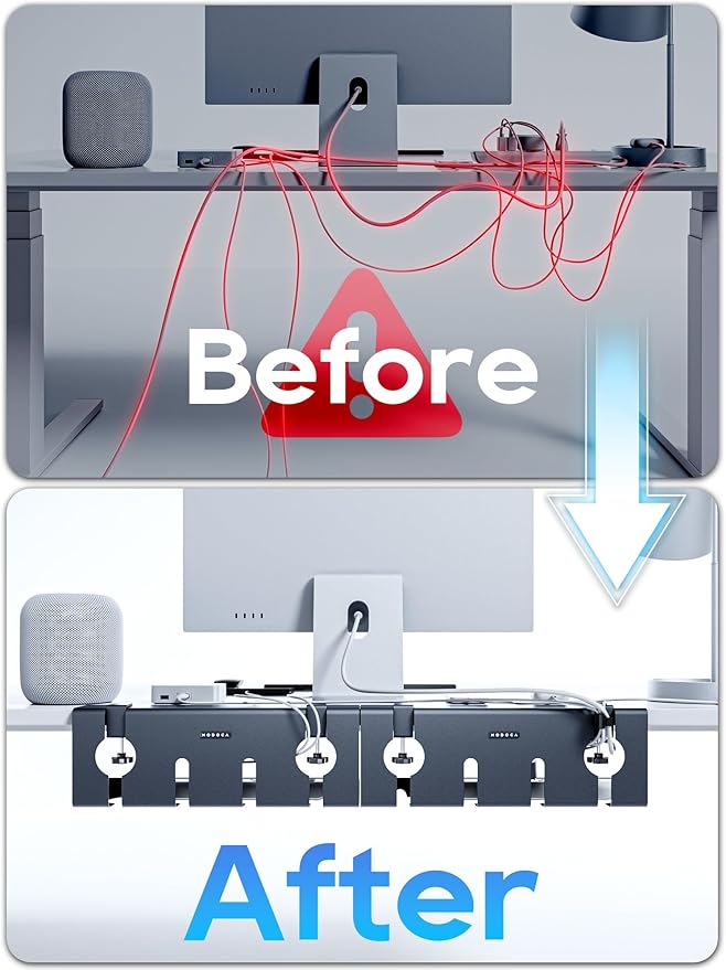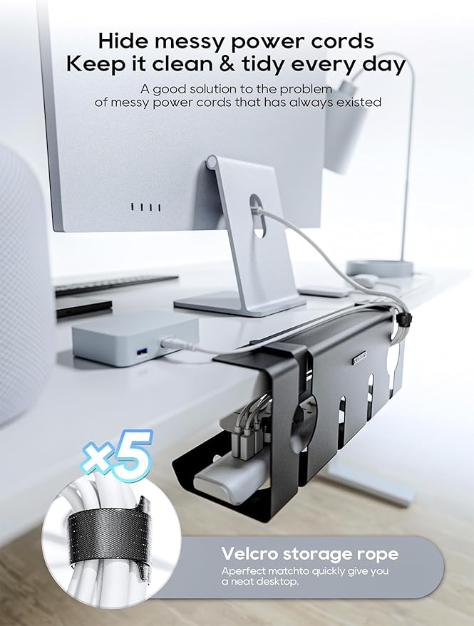 - NO NEED TO DRILL, BUT STRONGER——Fix the under-desk cable tray with the clamp-clip and tighten it, 3s to complete. The important thing is that it doesn't damage your table.