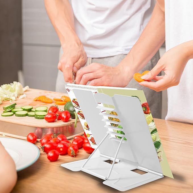 Metal Book Stand - Adjustable Book Holder for Reading (Full White)