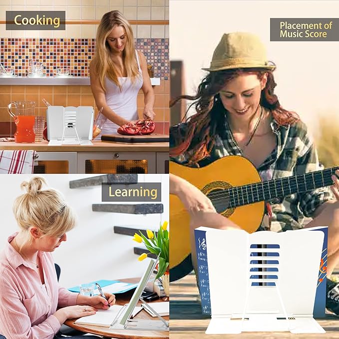 - 【Adjustable Book Holder】 Book Holder have six reading positions,The multiple notches on the backrest can adjust its height and angle.Adjust the height between the eyes and reading books or documents well