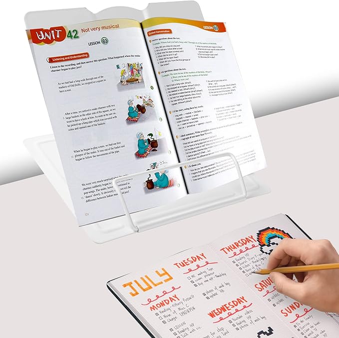 - 【Book Holder for Reading】The book holder is designed for keeping your hands-free when we are reading cookbook magazine painting papers documents text books sheet music catalogs notetablet or iPad. Support thicker books in school library dorm office or any other desktop.