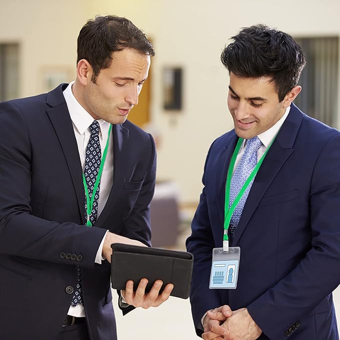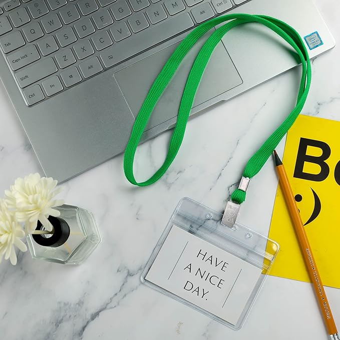 - INCLUDES : 100 horizontal name tag badge holders, 100 lanyards. lanyards for id badges
