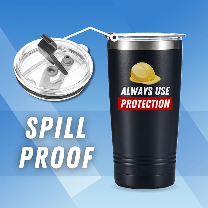 Onebttl Construction Worker Gifts Tumbler Coffee Mug, Stainless Steel Insulated, with Lids, 590ml/20oz - Always Use Protection