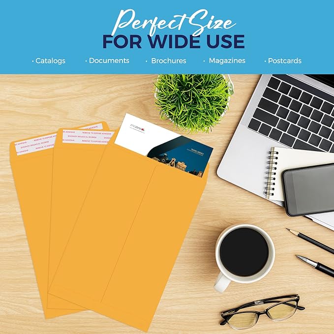 - Brown 6x9 envelope perfect for mailing business materials, photos, multi-page documents, brochures, catalogs, etc.