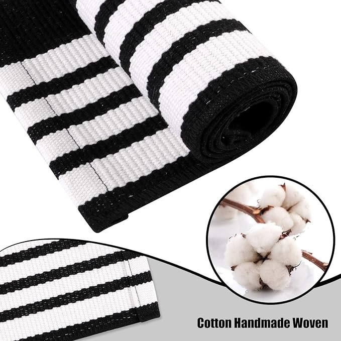 - Soft & Long Lasting: The outdoor rug is made of high quality cotton, which is comfortable to touch, and can withstand foot traffic and weather changes all year round. Delicate hand-woven doormat in classic black and white stripe, give your house a new look.