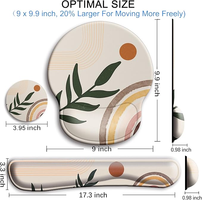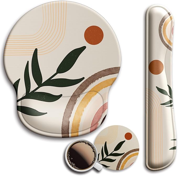 Mouse Pad and Keyboard Wrist Rest Support, with Non-Slip PU Base,Gel Mouse Pad with Coaster,Pain Relief for Gaming, Computer,Office -Boho Style