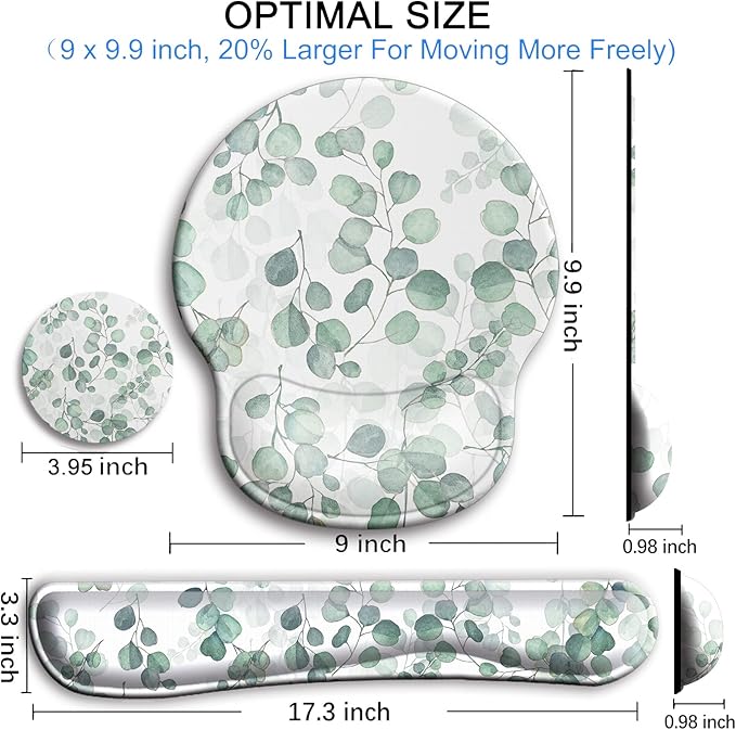 Mouse Pad and Keyboard Wrist Rest Support, with Non-Slip PU Base,Gel Mouse Pad with Coaster,Pain Relief for Gaming, Computer,Office -Eucalyptus