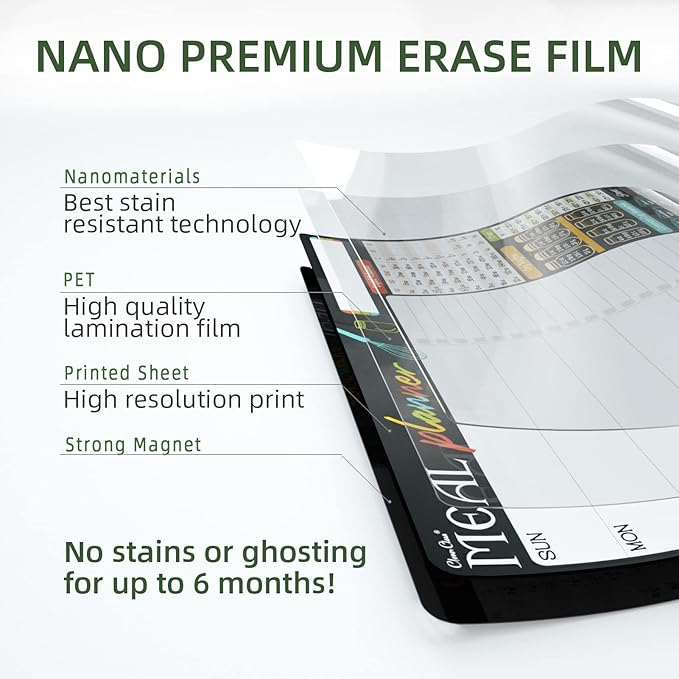 - Erases easily - We use nano premium erase film on our products. Compared to the old PET film, the nano material will make your writings super easy to be wiped off even after you leave the writings on the calendar for a long time.