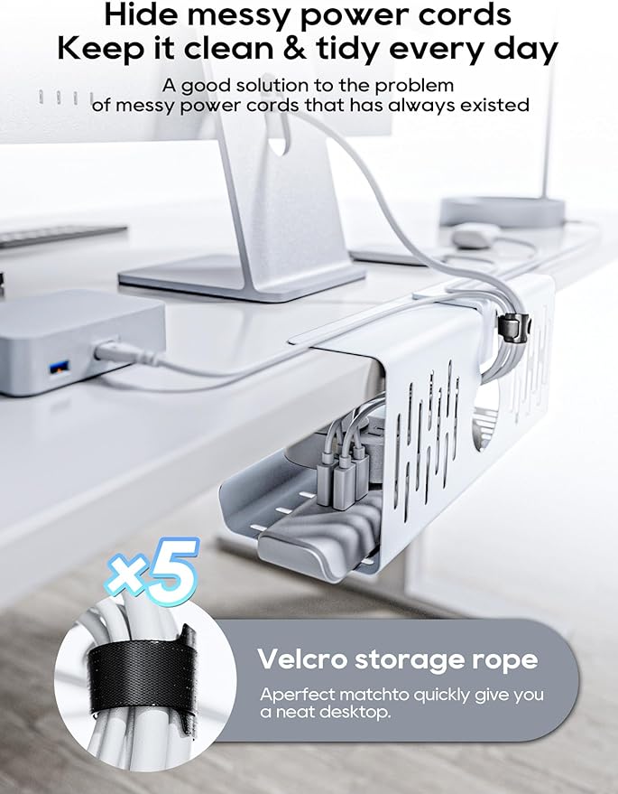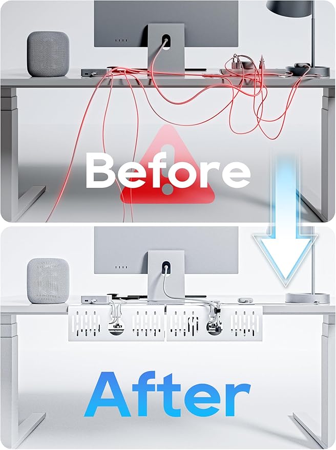 - NO NEED TO DRILL, BUT STRONGER——Fix the under-desk cable tray with the clamp-clip and tighten it, 3s to complete. The important thing is that it doesn't damage your table.