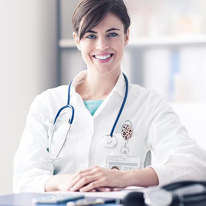 Badge Reels Retractable,Double Sided Color Print Pattern Retractable Badge Holders,with Retractable Keychain, Badge Clip and Key Ring,Durable Nylon Retractable Rope,Leopard Print