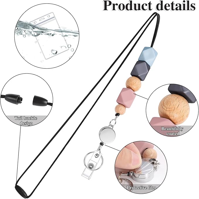 - 【Quality】Lanyards for id badges is made of high-quality wood, the beads are beautiful in color and very textured, and the rotatable buckle connecting the badge holder is made of high-quality alloy.
