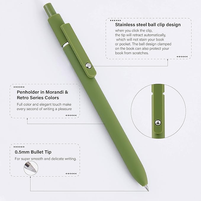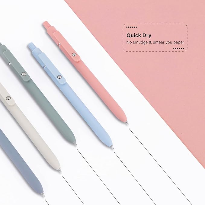 - Quick-Drying Ink Pens:Retractable Rolling Ball Gel Pens with fade-resistant ink, there’s no need to worry about getting ink on your hands or desk, as it won’t fade, bleed, or smudge. Note: After using the gel pen, it is suggested to lay the pen flat or the nib face up. This helps protect the pen tip