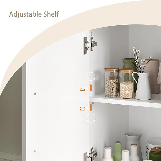 - Ample Storage Space: The modern cabinet features a spacious top and ample interior storage space. Removable, adjustable internal shelves create a spacious interior, giving you the freedom to place your items wherever you need them, making this accent cabinet a stylish freestanding storage unit.