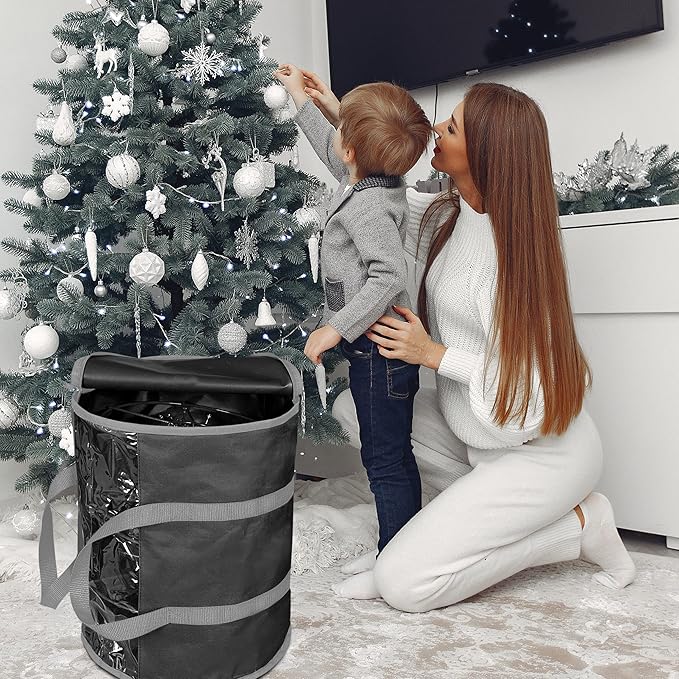 - CARRY: Your lights have never been so easy to carry with this bad and long handles We have also added a handle that allows you to grab the box container when bringing it down from storage.
