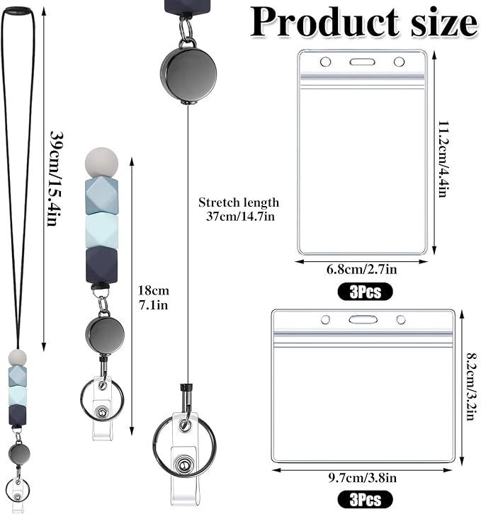9 in 3 Set Retractable Lanyard for ID Badges, Teacher Lanyard with Badge Holders Beaded Cute Lanyards for ID Badges and Keys Teacher Appreciation Gifts Office Gift for Coworkers