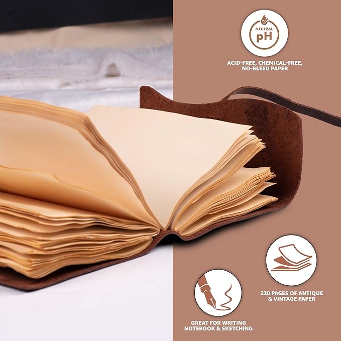 - Premium Quality Vintage Paper: Features 220 pages of 100gsm weight, acid-free, pH-neutral paper, ensuring durability and compatibility with all kinds of pens & Pencil without bleed-through.