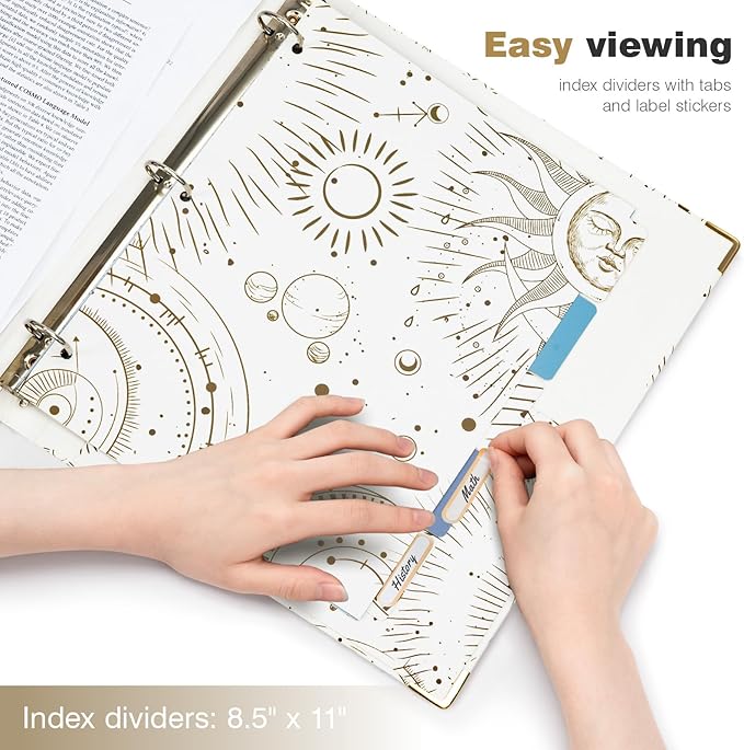 - 【Binder with Dividers】Binder comes with 5 index dividers with tabs and 18 custom label stickers for easy viewing. Features two interior pocket to store letter size papers and important loose documents.
