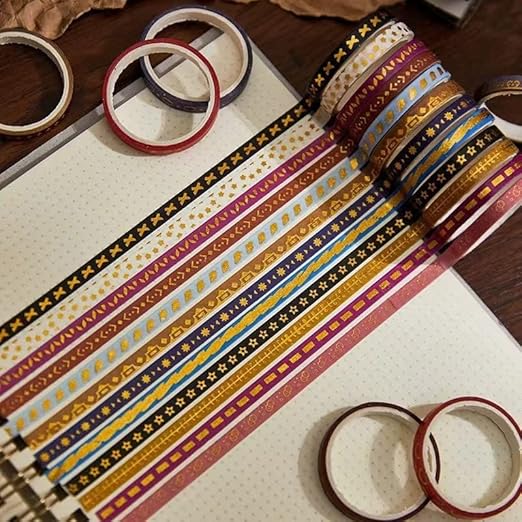 YUBX Skinny Gold Washi Tape Set Basic Foil Print Decorative Masking Tapes for Arts, DIY Crafts, Journals, Planners, Scrapbook, Wrapping (Interstellar Space)