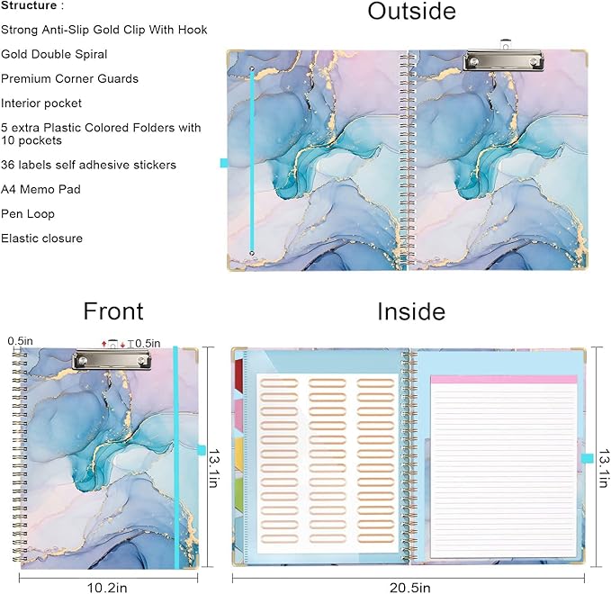 - 【Organize Your Life】This Clipboard with storage can be useful in many upsets, help you organize your time, plan your life, improve your quality of life, improve work efficiency. This clipboard notebook folder combo also suitable for office, students, teachers, nurses, school, and families. You can use it as a Christmas, birthday, Thanksgiving, New Year gift to your friends, children, parents, and lovers.