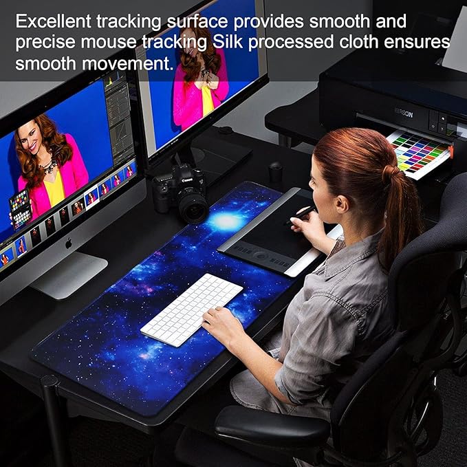 Large Gaming Mouse Pad with Stitched Edges,[27.5x11.8In] Extended Blue Space Mouse Pad with Non-Slip Natural Rubber Base for Gamer/Desktop/Office/Home 70x30 Bluespace04