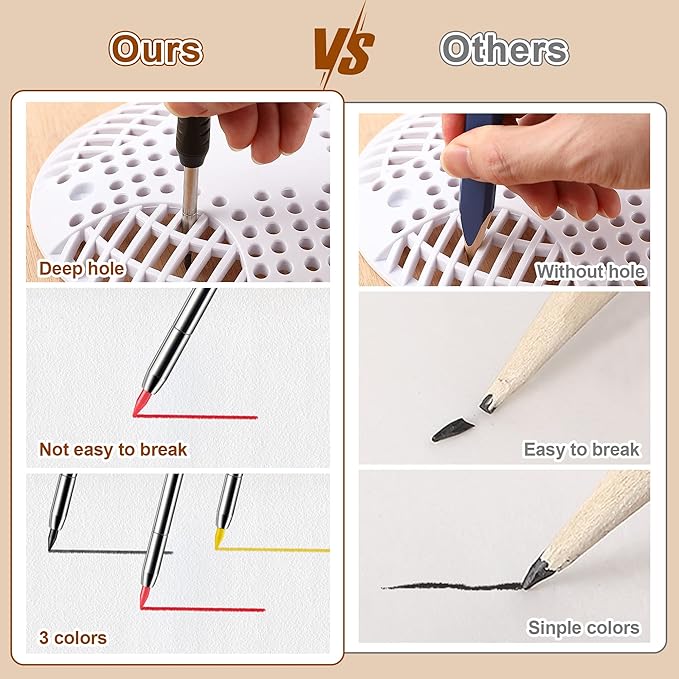 - Quality Material: The 2.8mm thick lead resists breaking during use, even under pressure. It delivers smooth, clean, and precise lines, and is waterproof. It can mark on various surfaces such as concrete, metal, plastic, wood, and paper