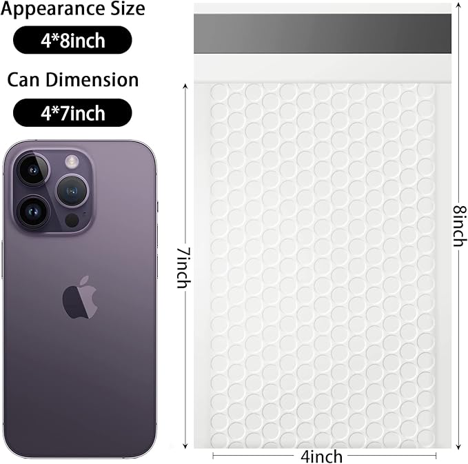 - <b>✨【Bubble Mailers Size】</b> Exterior Size: 4 x 8 inch. Usable size: 4 x 7 inch. our mailer envelopes are lined with unique air cellular layers and 360°strong air bubble technology, which can help absorb shock during shipment and provide effective shipping protection for your products.<br>