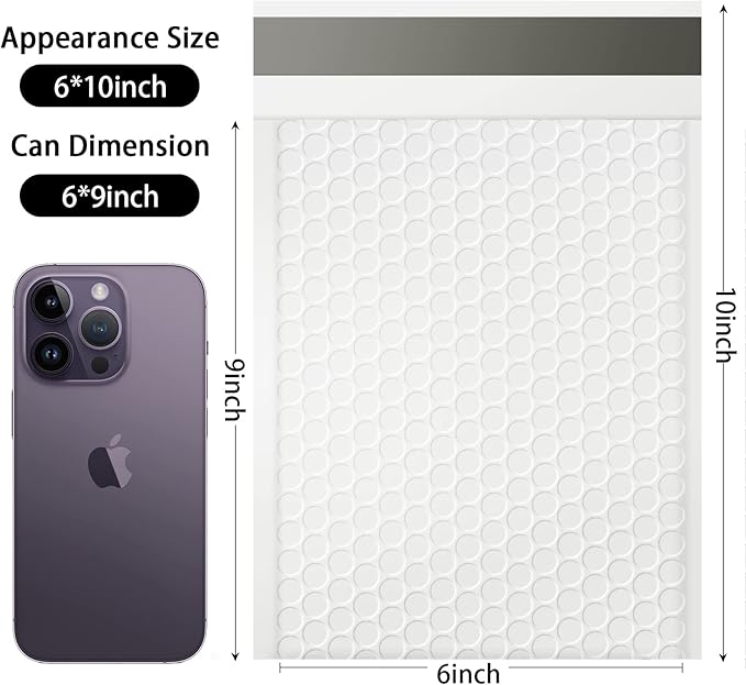 - <b>✨【Bubble Mailers Size】<b> Exterior Size: 6 x 10 inch. Usable size: 6 x 9 inch. our mailer envelopes are lined with unique air cellular layers and 360°strong air bubble technology, which can help absorb shock during shipment and provide effective shipping protection for your products.<br>